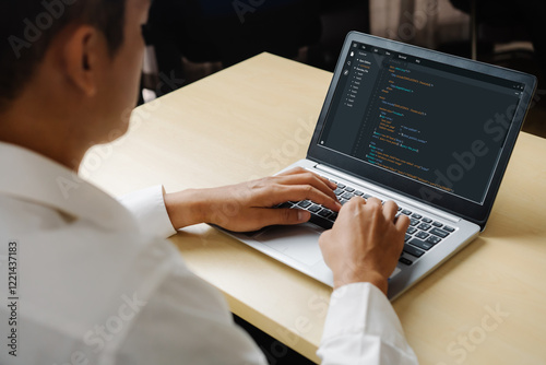 The watermark will not be included on Wall mural.: Software development programming on computer screen for modish application and program coding
