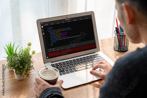 The watermark will not be included on Wall mural.: Software development programming on computer screen for modish application and program coding