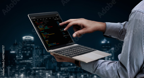 The watermark will not be included on Wall mural.: Software development programming on computer screen for modish application and program coding