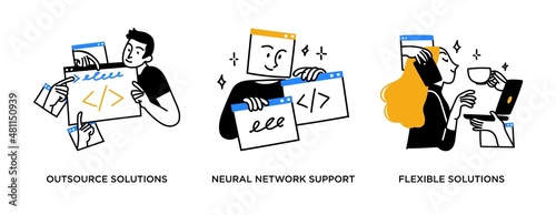 The watermark will not be included on Wall mural.: Software development solutions - set of business concept illustrations - outsource, cloud computing a