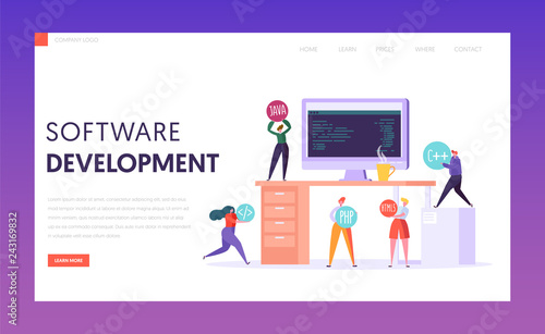 Wall mural : Software development technology teamwork stack landing page - monitor on office desk - proffesional we