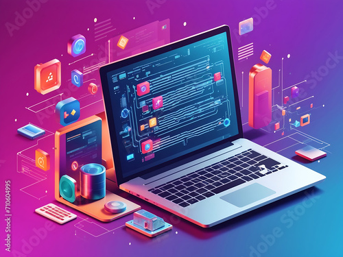Wall mural software development. programming, coding, and software testing on a laptop. abstract program code o