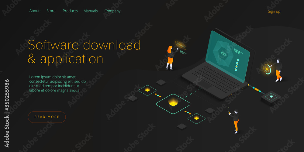 Wall mural software download and application isometric vector illustration. programmers and engeneers working o - Wall murals Wall mural software download and application isometric vector illustration. programmers and engeneers working o - Wall murals