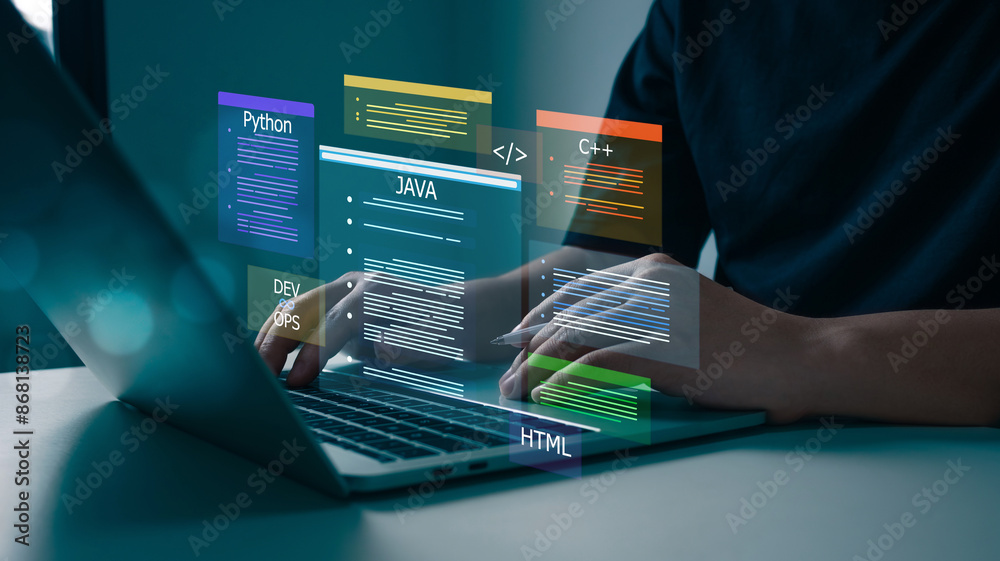 Wall mural software engineer and software development concepts, programming for various devices, computer progr - Wall murals Wall mural software engineer and software development concepts, programming for various devices, computer progr - Wall murals
