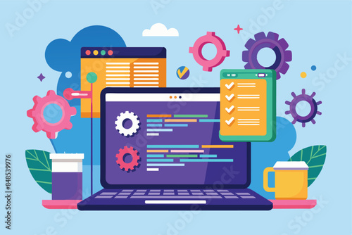 The watermark will not be included on Wall mural.: Software engineering coding on the laptop screen
