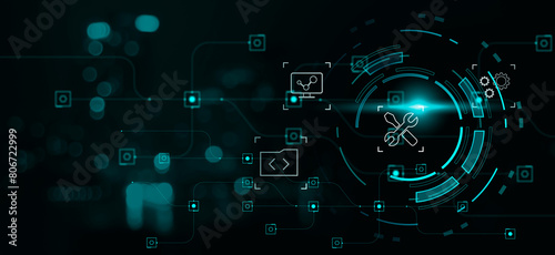 Wall mural : Software engineering designing programming code application softwares development using ai digital a