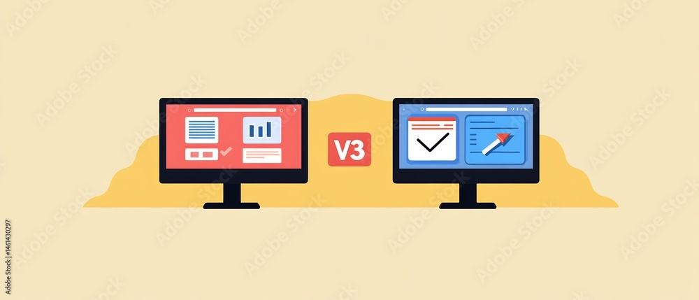 Wall mural software evolution represented by two computer screens showcasing version updates - Wall murals Wall mural software evolution represented by two computer screens showcasing version updates - Wall murals