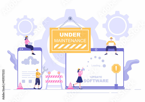 Wall mural software system under maintenance vector illustration. error website, development and update webpage - Wall murals Wall mural software system under maintenance vector illustration. error website, development and update webpage - Wall murals