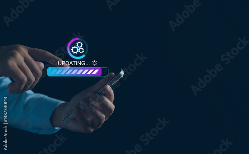 Wall mural software update or firmware system upgrade concept, installing app process, improved functionality i