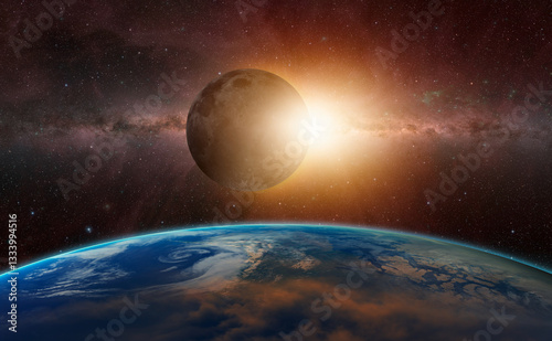 Wall mural solar eclipse over the planet earth "elements of this image furnished by nasa" - Wall murals Wall mural solar eclipse over the planet earth "elements of this image furnished by nasa" - Wall murals