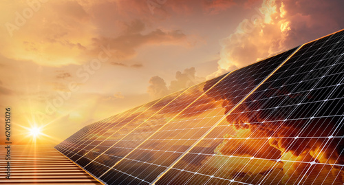 Wall mural solar panels reflect sparkling light from the sun ,clean energy and environment. 3d rendering