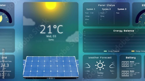Wall mural solar power monitoring system, digital infographic data of green energy management app dashboard, cl - Wall murals Wall mural solar power monitoring system, digital infographic data of green energy management app dashboard, cl - Wall murals
