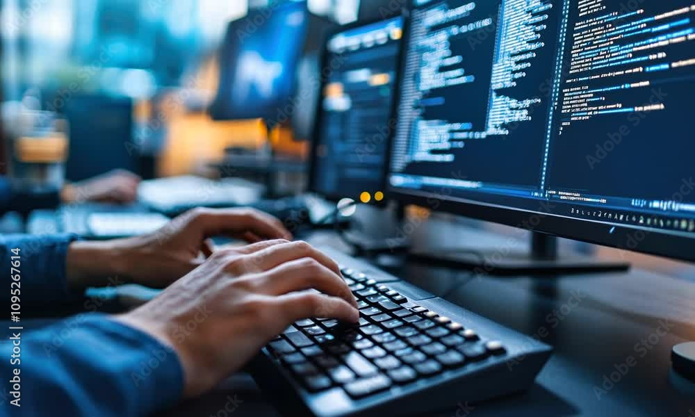 The watermark will not be included on Wall mural.: Someone is working in front of a computer screen