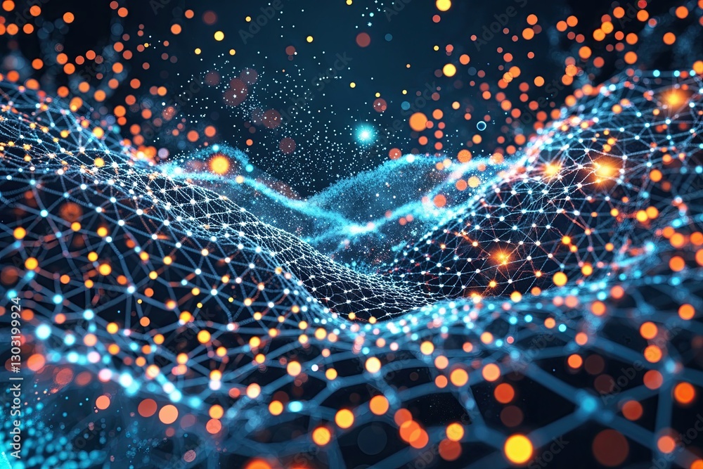 Wall mural sophisticated technology inspired mesh with vibrant abstract particle background