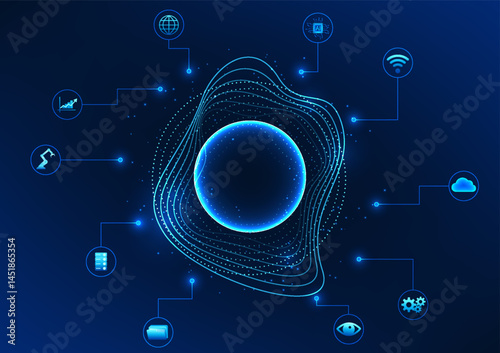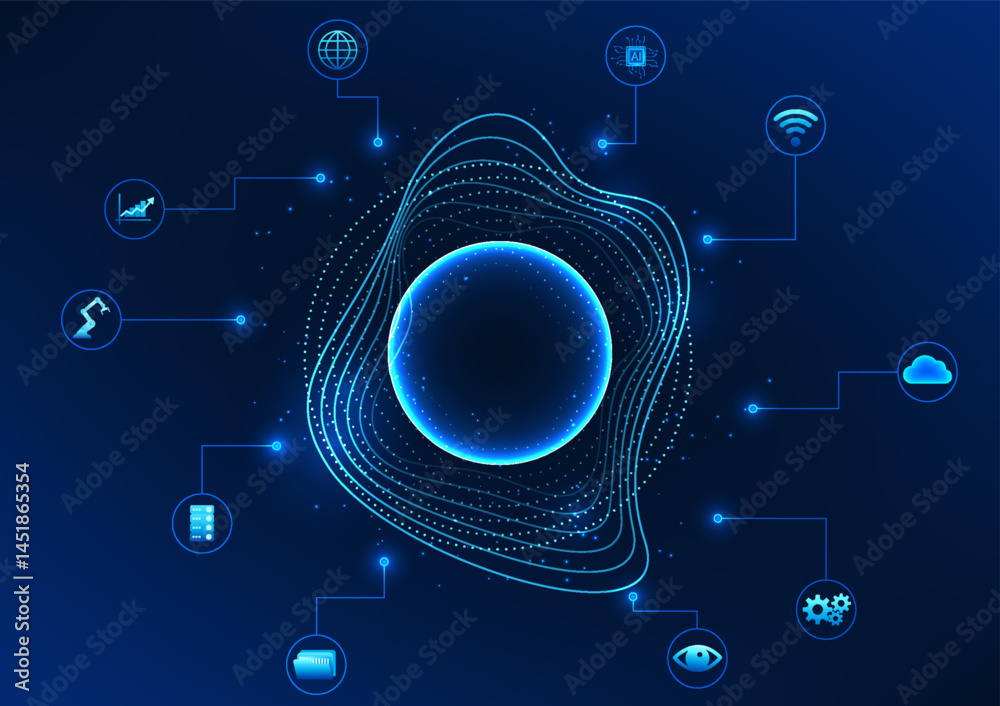 Wall mural : Sound wave in a circle surrounded by an ai icon represents ai technology that can listen and process