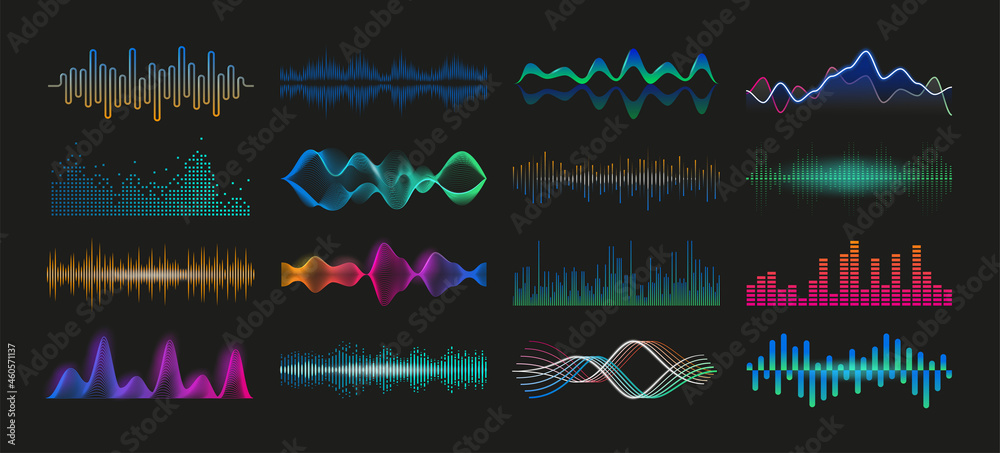 Wall mural soundwave. audio spectrum waveform. sound frequency and music pulse graphic effect. volume and radio - Wall murals Wall mural soundwave. audio spectrum waveform. sound frequency and music pulse graphic effect. volume and radio - Wall murals