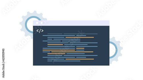 Wall mural : Source code scrolling with gear element, animated scene explanation