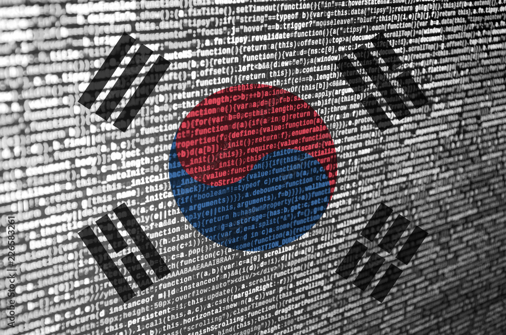 South korea flag is depicted on the screen with the program code - the concept of modern technology aWall mural