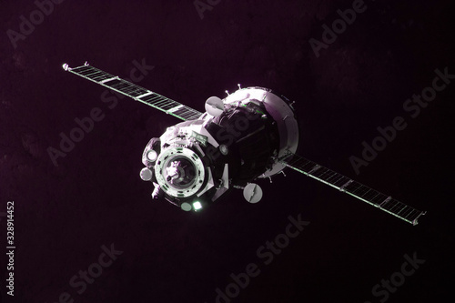 Soyuz ms-21 manned spacecraft in orbit around the earth - elements of this image furnished by nasa - Wall mural
