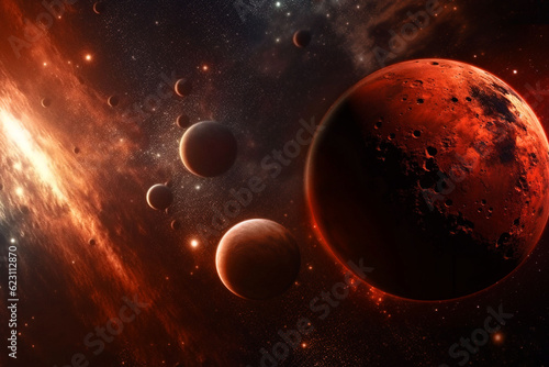 Wall mural : Space, planets and armageddon in night universe, galaxy and solar system with earth, mars and pluto -
