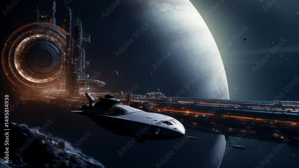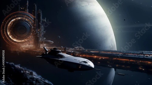 Wall mural : Space abstract si fi background with abstract spaceship in cosmos,