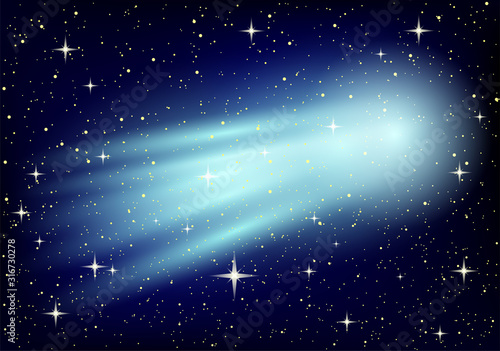 Wall mural : Space background with comet and stars on a dark background -