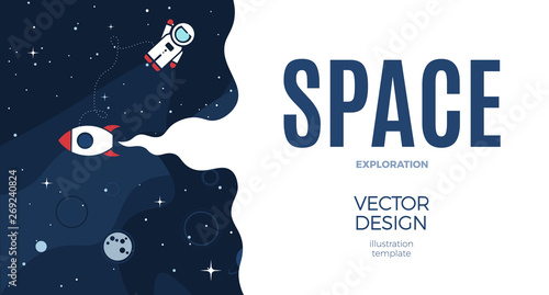 The watermark will not be included on Wall mural.: Space background with cosmos and white empty place for text - cute template with astronaut, spaceship