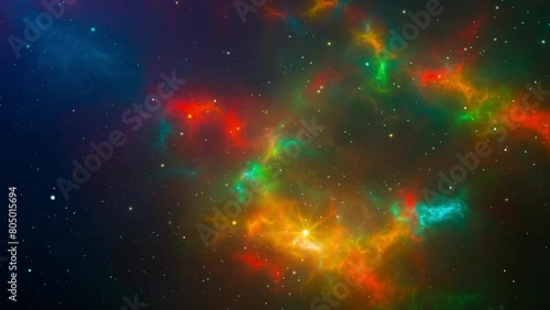 The watermark will not be included on Wall mural.: Space background - flying through colorful fractal nebula with star field - digital abstract animation