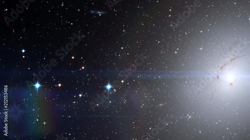 Wall mural space exploration around elliptical galaxy with flying stars and star burst in outer space, 3d anima - Wall murals Wall mural space exploration around elliptical galaxy with flying stars and star burst in outer space, 3d anima - Wall murals