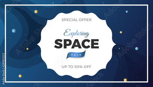 The watermark will not be included on Wall mural.: Space exploration background design, modern gradient vector template with flat style cosmic illustra