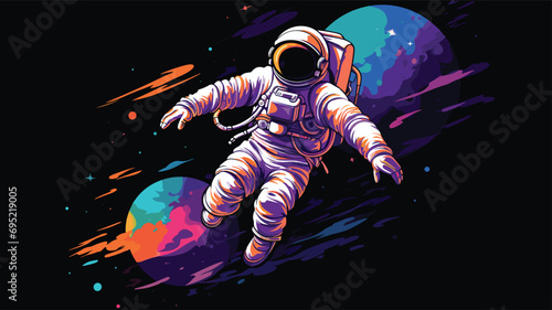 The watermark will not be included on Wall mural.: Space exploration vector vector illustration of an astronaut floating in space with the earth in the