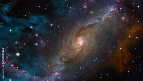 The watermark will not be included on Wall mural.: Space flight slowly moving through universe among planets galaxies stars and nebulae