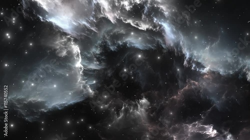 Wall mural : Space flight through nebula - white dwarf in nebula