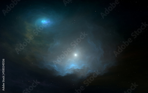 Wall mural space nebula. giant interstellar cloud and stars scattered across the universe. 3d rendering, fracta - Wall murals Wall mural space nebula. giant interstellar cloud and stars scattered across the universe. 3d rendering, fracta - Wall murals