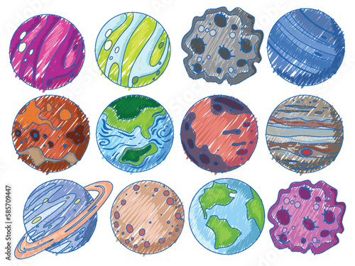 The watermark will not be included on Wall mural.: Space objects in pencil colour sketch simple style