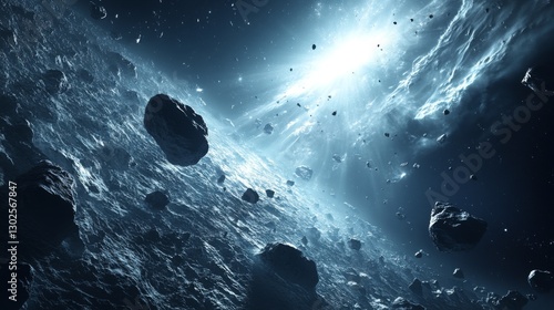Wall mural space rocks flying. asteroids floating in dark sky. cosmic scene. outer space. celestial view. light - Wall murals Wall mural space rocks flying. asteroids floating in dark sky. cosmic scene. outer space. celestial view. light - Wall murals