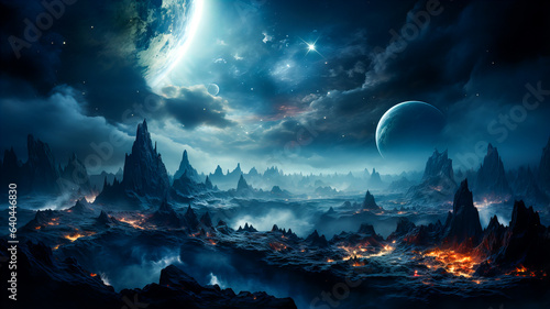 Wall mural : Space scene with stars, planets and asteroids in the galaxy - panorama - abstract universe filled with