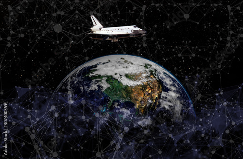 Wall mural : Space ship shuttle on the earth orbit in atmosphere - flying in outer space - elements of this image f