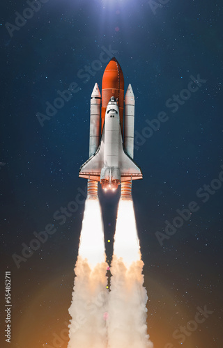 Wall mural space shuttle flight in outer space. launch of rocket with astronauts. mission of spaceship. element