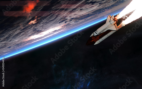 Wall mural space shuttle in earth orbit. solar system. science fiction. elements of this image furnished by nas - Wall murals Wall mural space shuttle in earth orbit. solar system. science fiction. elements of this image furnished by nas - Wall murals