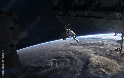 Wall mural space station in orbit of planet earth. solar system. science fiction. elements of this image furnis - Wall murals Wall mural space station in orbit of planet earth. solar system. science fiction. elements of this image furnis - Wall murals