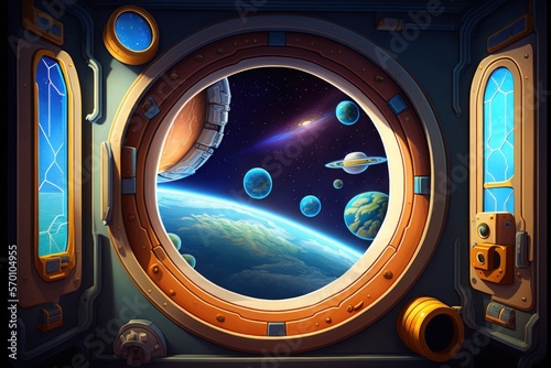 The watermark will not be included on Wall mural.: Space station window view of the universe - generative ai