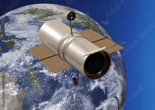 The watermark will not be included on Wall mural.: Space telescope hubble near the earth planet of solar system in outer space - 3d rendered illustratio