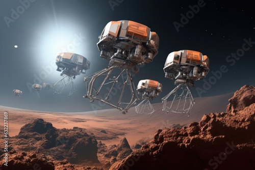 The watermark will not be included on Wall mural.: Spacecraft deploying nanobots for resource extraction