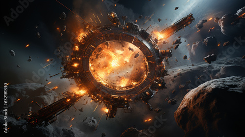 Wall mural spacecraft in intergalactic warfare with a world exploding. generative ai - Wall murals Wall mural spacecraft in intergalactic warfare with a world exploding. generative ai - Wall murals