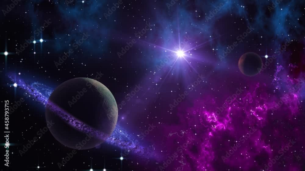 The watermark will not be included on Wall mural.: Spacescape background slowly moving through planetary system universe galaxies stars and nebulae