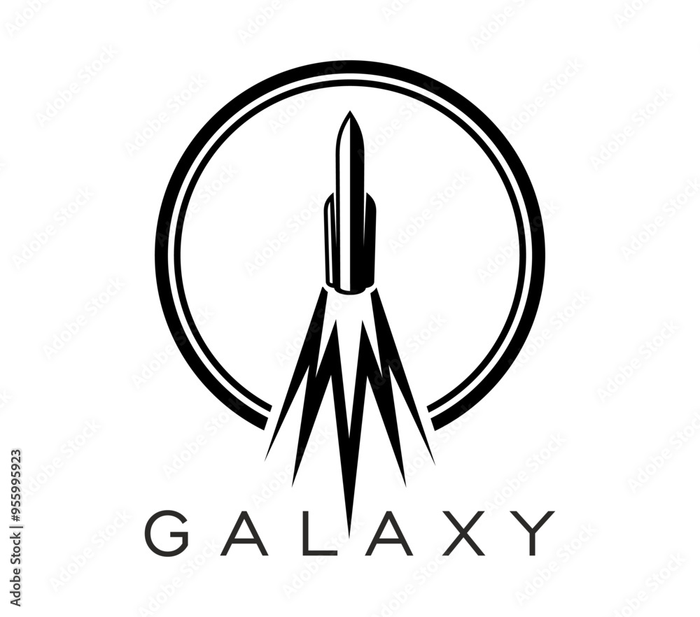 Wall mural spaceship, space rocket icon. isolated vector black launching shuttle with fire trail enclosed withi - Wall murals Wall mural spaceship, space rocket icon. isolated vector black launching shuttle with fire trail enclosed withi - Wall murals