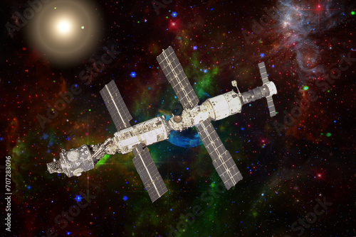 Wall mural spaceship above the earth. the elements of this image furnished by nasa.