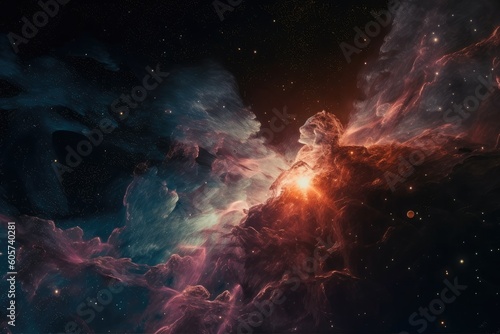The watermark will not be included on Wall mural.: Spaceship flying through nebula with stars in the background, created with generative ai