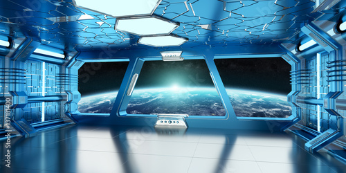Spaceship interior with view on distant planets system 3d rendering elements of this image furnishedWall mural